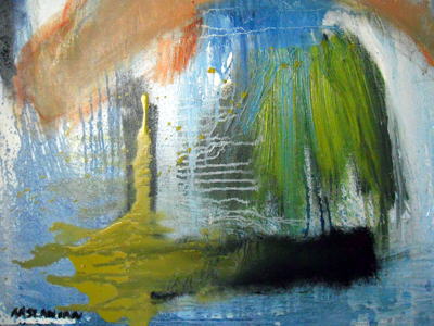 In these paintings, the artist plays with transparent washes of color and form that demonstrate a thorough familiarity with the masters of the 20th century, while also giving a nod to the arts of calligraphy and bookbinding.  Spinks’s works are simultaneously deeply personal and reflective of the broader experience of immigrants around the world.